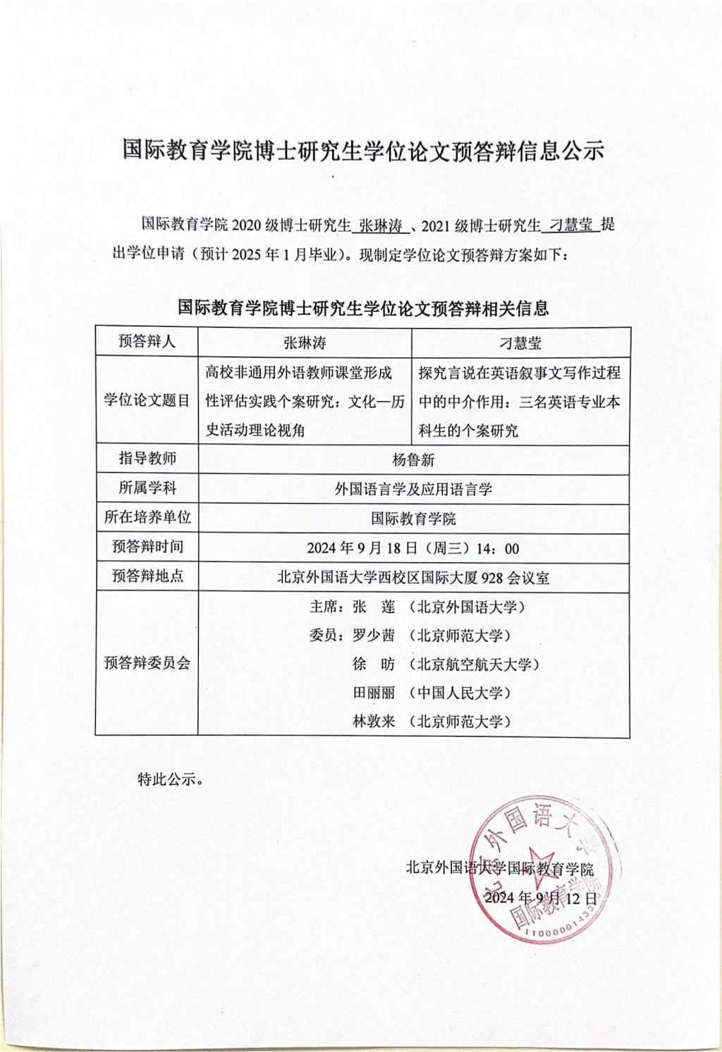 英国上市公司365博士研究生学位论文预答辩信息公示