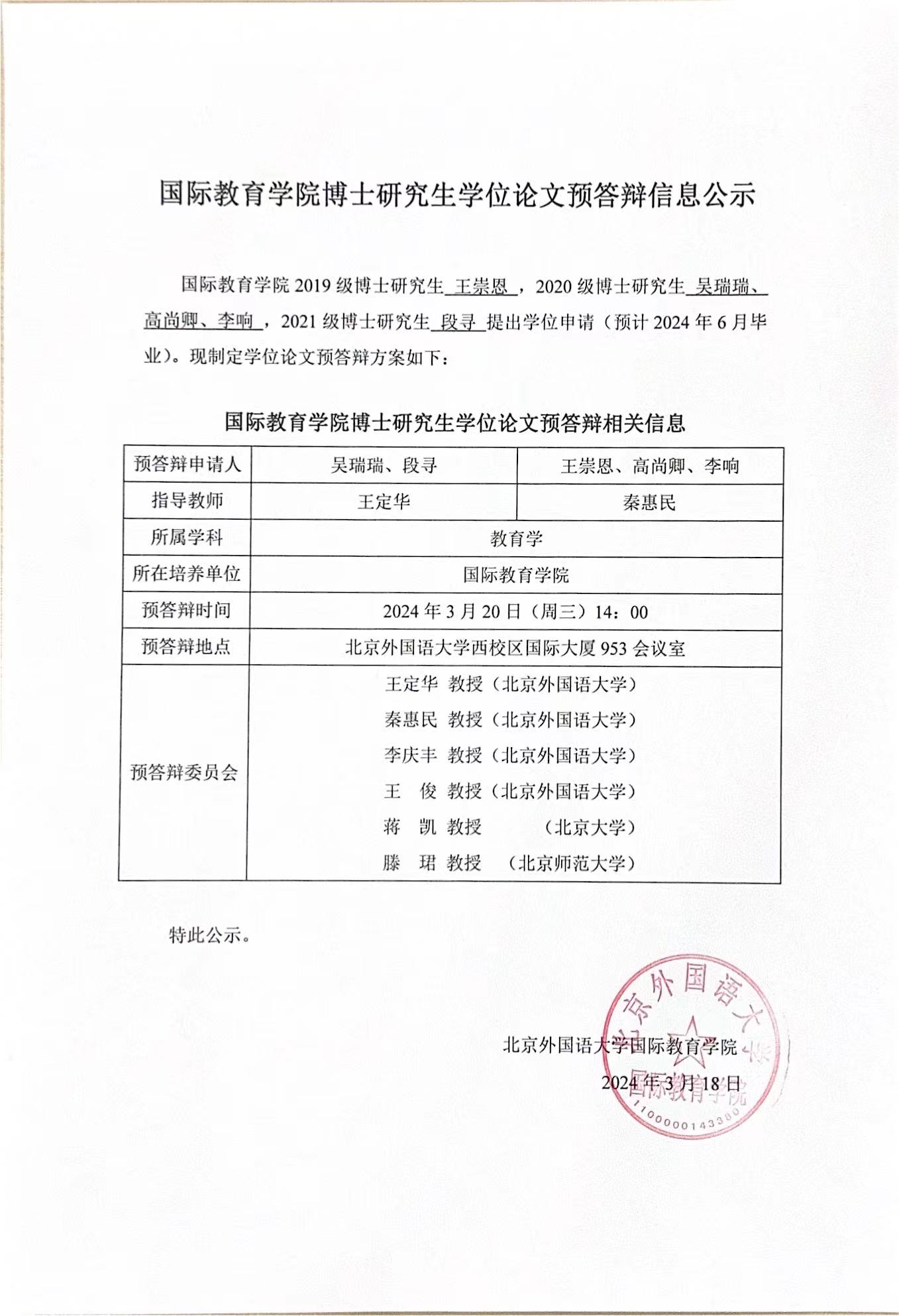 英国上市公司365 2021 级博士研究生预答辩信息公示