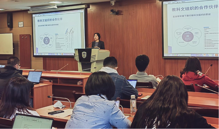 在讲座中,李又文老师结合自身在联合国教科文组织多年的工作经历,给大家分享了联合国教科文组织招聘的基本要求及其一些注意事项。李又文老师鼓励同学们积极参与相关的实习项目,将来能成为具有全球视野、有专业本领的复合型人才,为推动中国更好走向世界、世界更好了解中国作出新的更大贡献。
