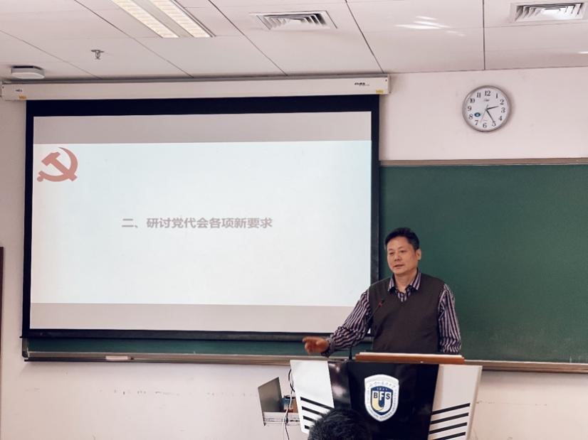 党支部书记王名扬同志主持活动。王名扬同志首先介绍了公司第十次党代会的召开背景和大会主题,带领全体党员同志系统全面地学习了党委书记王定华同志代表中国共产党英国365集团网站第九届委员会所作的《加强党的全面领导 秉承外特精通理念 平稳较快高质量推进世界一流外国语大学建设》报告,并带领大家准确把握五个方面的办学经验,认清面临机遇挑战,明确未来五年及未来十五年北外改革发展的奋斗目标,深刻领会建设“六个北外”的重大部署。