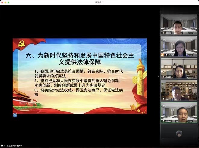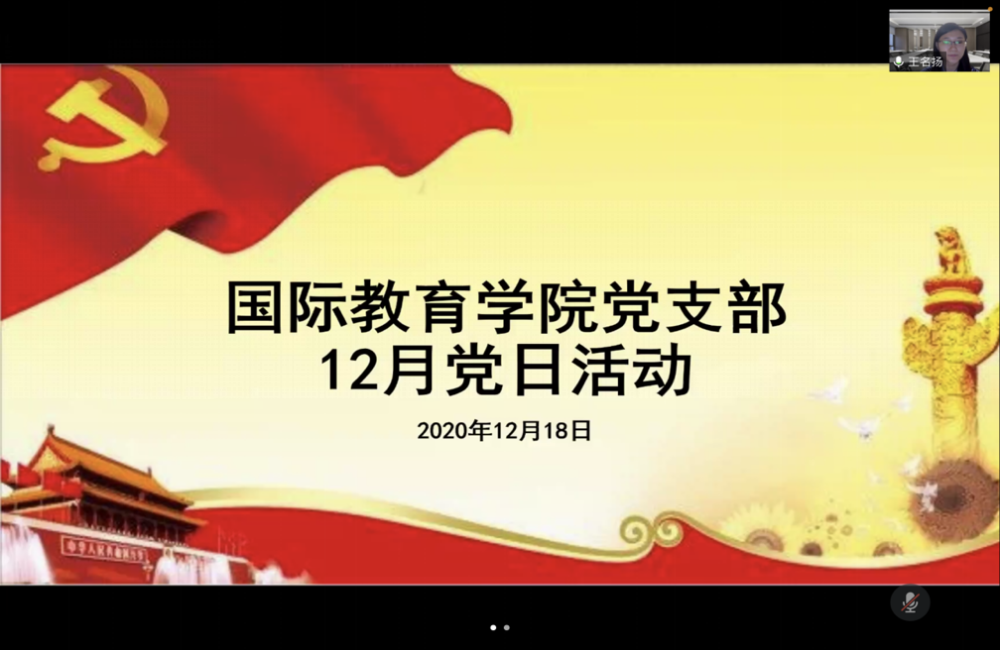 2020年12月31日上午,公司党支部以“加强‘两个共同体’教育,培养兼具中国情怀与全球视野的高素质涉外人才”为主题,在线开展创新理论学习活动。本次理论学习,结合学习《习近平谈治国理政》第三卷的相关内容,围绕“培养什么人、怎样培养人、为谁培养人”这一根本问题展开集中学习与研讨。本次活动由支部书记王名扬主持,公司师生党员参加。