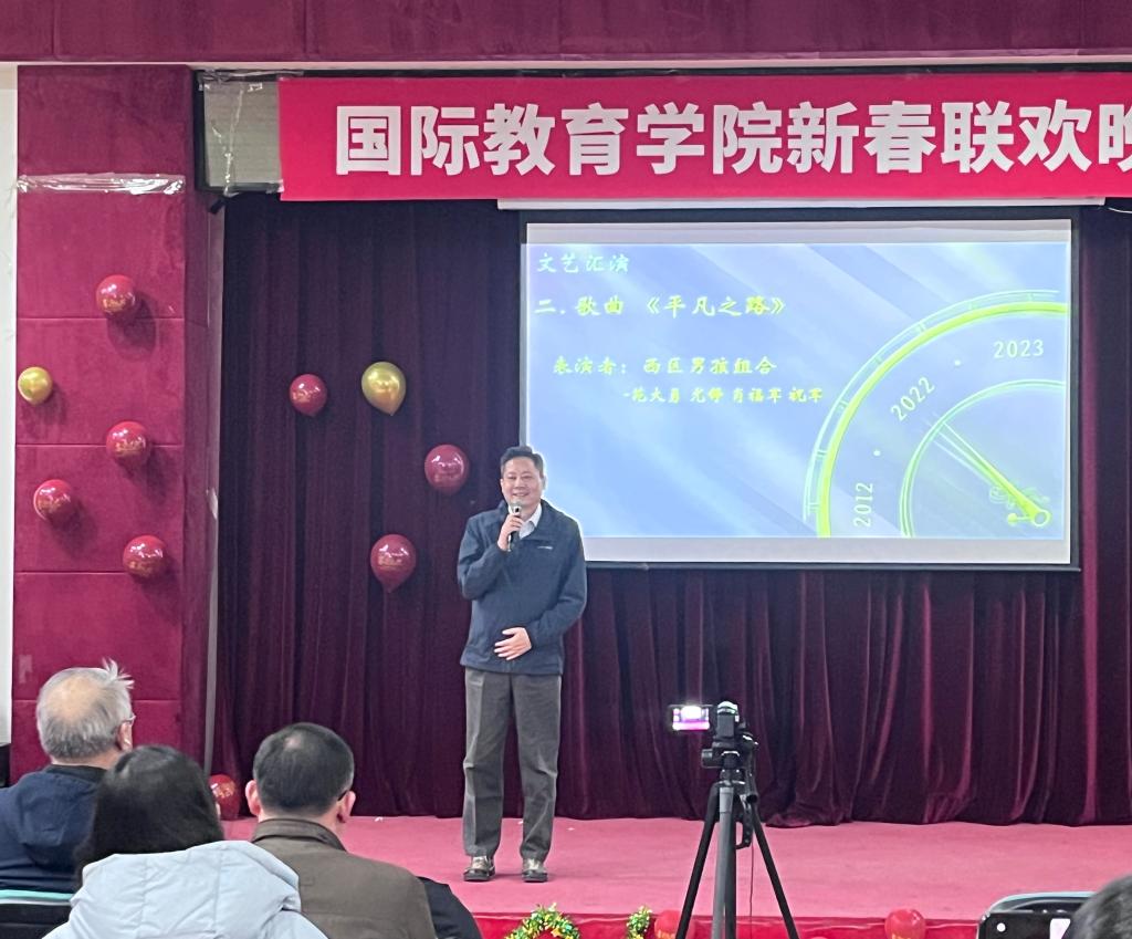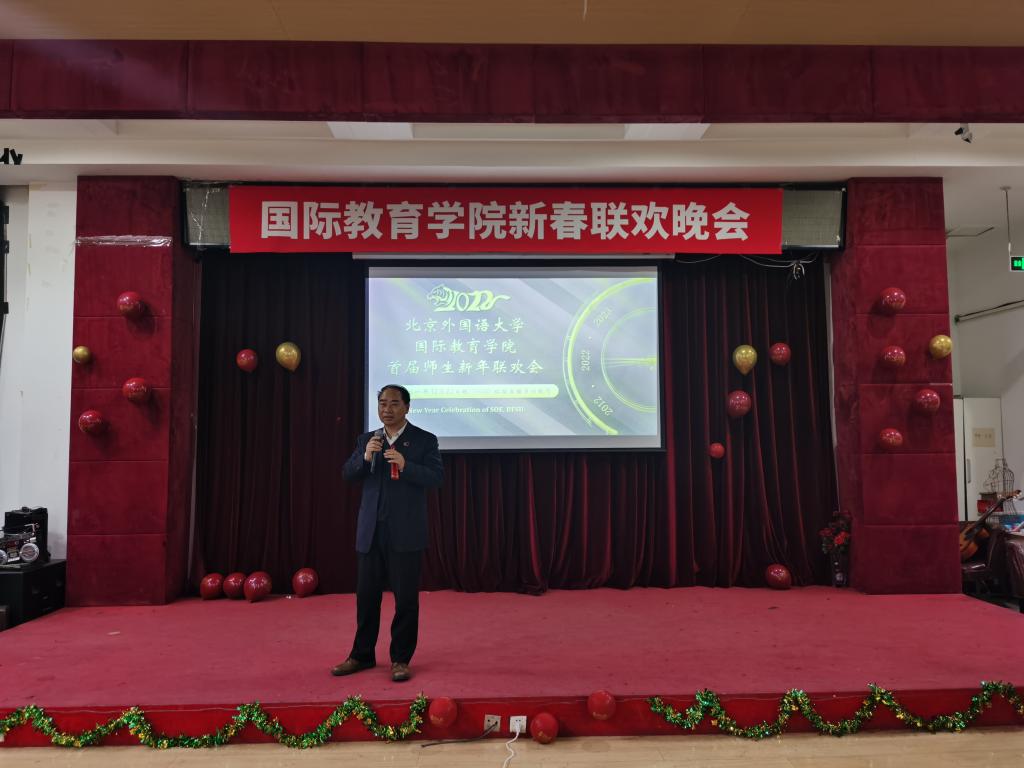 英国上市公司365经理秦惠民教授发表简短致辞,他首先以幽默的话语表达了对公司首次迎新年联欢晚会的祝贺,期待着师生演出的精彩瞬间,并预祝大家新年快乐,充满希望地迎接2022年的到来。