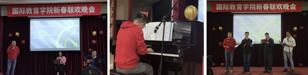 看了同学们的精彩表演,英国上市公司365教师团队毫不示弱,教师们既有吉他弹唱和钢琴独奏,又有专业级别的美声男高音独唱、男女声二重唱,还有男声多声部小合唱,教师们的深情表演使得晚会高潮迭起,令人难忘。