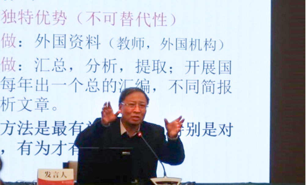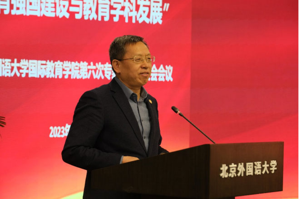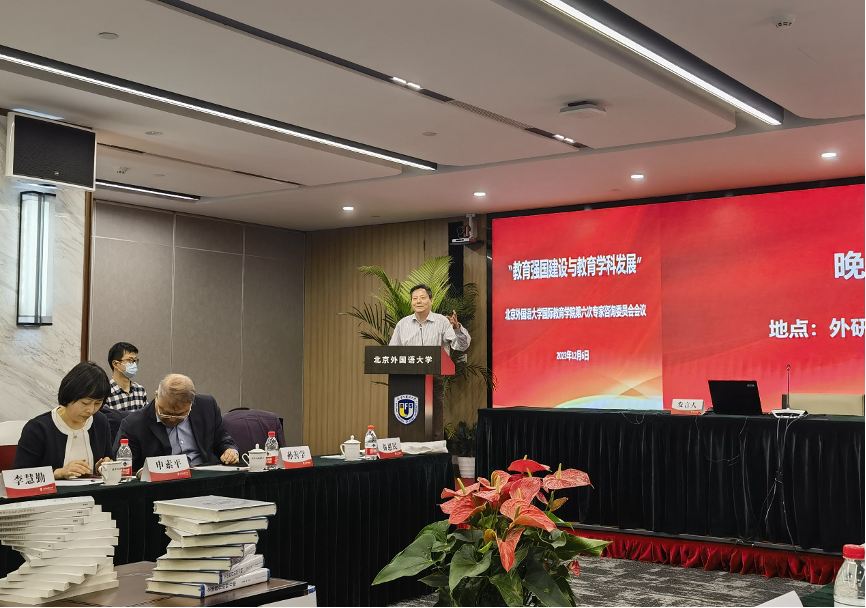 中国教育科学研究院副经理马陆亭研究员做了题为《北外教育学科如何支撑强国建设》的主旨报告,他从教育学科的发展和北外教育学科的特色重点两个方面阐述了自己的观点,他认为,以人的成长为逻辑起点的微观教育学和以教育社会功能实现为逻辑起点的宏观教育学共同推动我国教育事业发展。