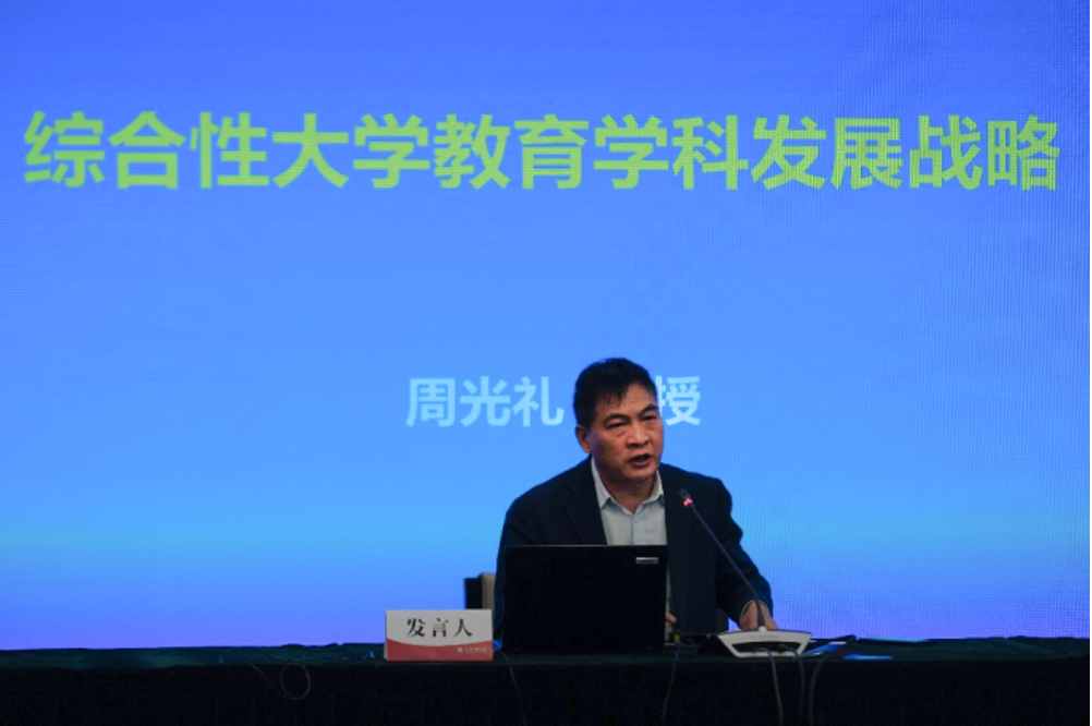 全国高校信息资料研究会副会长、全国高校信息资料研究会院校战略研究分会理事长、中国人民大学英国上市公司365经理周光礼教授做了题为《综合性大学教育学科发展战略》的主旨报告,他从三个方面对综合性大学教育学科的建设与发展进行了阐述,提出要通过坚持守正创新、问题导向和系统观念,集中有限资源打造比较优势的发展战略和四个基本策略来建设“五个一流”的教育学科。