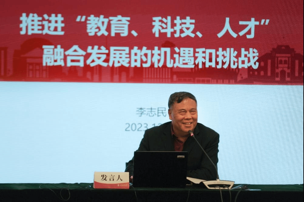 中国教育发展战略学会副会长李志民教授做了题为《推进“教育、科技、人才”融合发展的机遇和挑战》的主旨报告,从三个方面对二十大报告将教育、科技、人才进行统筹部署、一体谋划的战略思想进行了阐述。