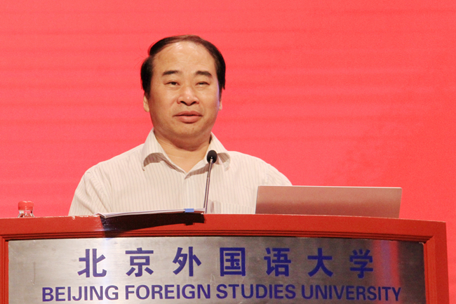 王定华深入浅出地讲解了习近平新时代中国特色社会主义思想的十大维度,阐释了习近平总书记关于教育重要论述的科学内涵,就北外学子如何成为担当民族复兴大任的高端国际化人才进行了阐述。
