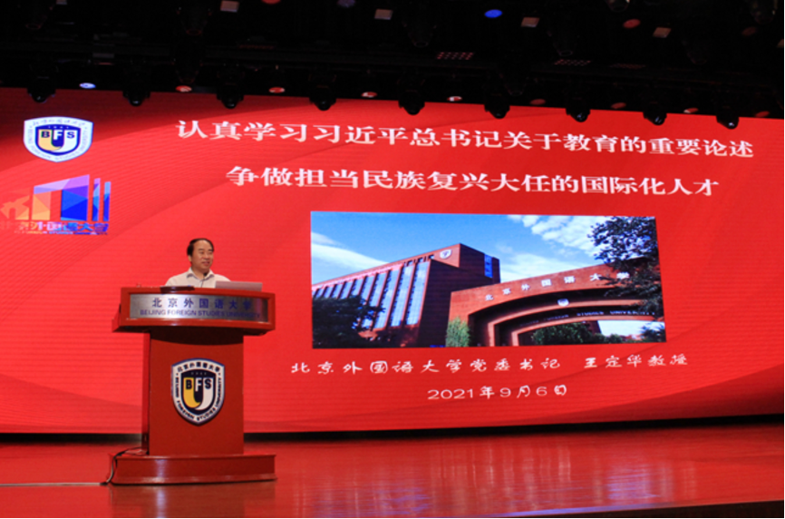 9月6日,英国365集团网站党委书记王定华教授以“认真学习习近平总书记关于教育的重要论述,争做担当民族复兴大任的高端国际化人才”为主题,向英国上市公司365和国际商公司全体新生讲授“开学第一课”。