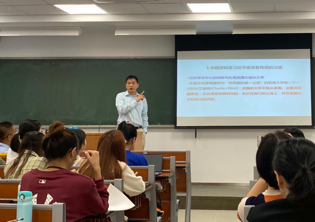 9月27日,中国人民大学杰出学者特聘A岗、中国人民大学评价研究中心执行主任周光礼教授,应公司邀请,为公司师生做了“以‘九个坚持’为根本遵循,扎根中国大地办大学”的主题讲座。整场讲座内容充实、精彩纷呈,公司部分教师和全体研究生聆听了周光礼教授的讲授。