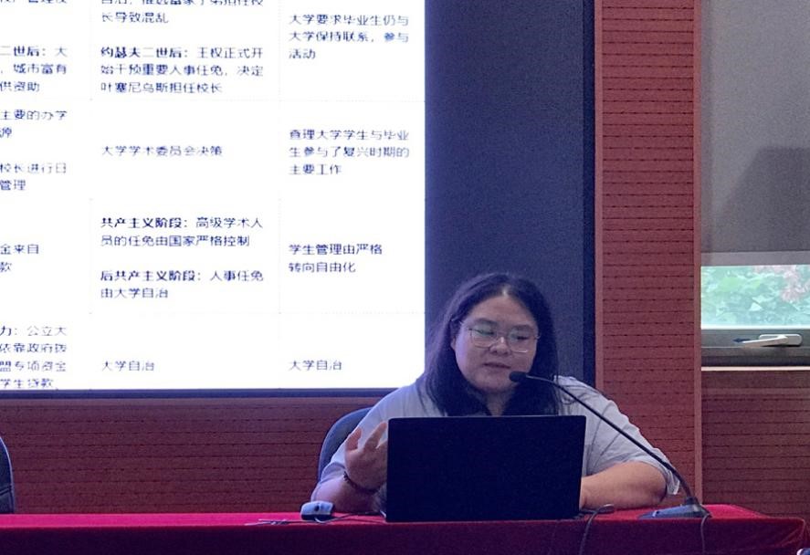 公司青年教师王名扬、博士生陈虹应邀出席学术年会,并在分论坛四“全球高等教育治理的理论与实践”做了题为《捷克高等教育治理嬗变历史研究——以查理大学为例》的学术报告。该报告基于2020年度英国365集团网站基本科研业务费自主选题重点课题“从传统到现代的嬗变:大学治理的欧陆模式研究”(项目编号:2020JJ008)的阶段性研究成果,围绕不同历史时期大学内外部利益相关者参与大学重大事务决策的结构和过程进行了讨论,归纳了五个历史时期治理事项的权力分布和治理嬗变的阶段性特征,并就相关内容与国内同行学者进行了深入交流和讨论。