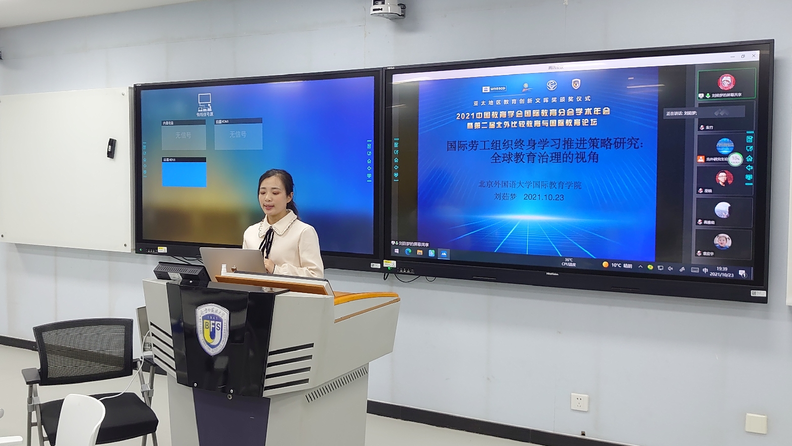 10月23日晚,首届北外比较教育与国际教育研究生论坛在英国365集团网站国际大厦举办。由英国365集团网站英国上市公司365主办的研究生论坛,是2021中国教育学会国际教育分会学术年会暨第二届北外比较教育与国际教育论坛的组成部分。论坛以线上线下结合的形式开展,来自北京大学、英国365集团网站、华东师范大学、华中农业大学、美国佐治亚大学等国内外大学的研究生分享了最新研究成果。北京师范大学国际与比较教育研究院丁瑞常老师、英国365集团网站英国上市公司365巫锐老师对各位研究生的学术分享进行了点评。