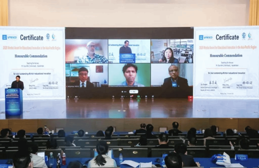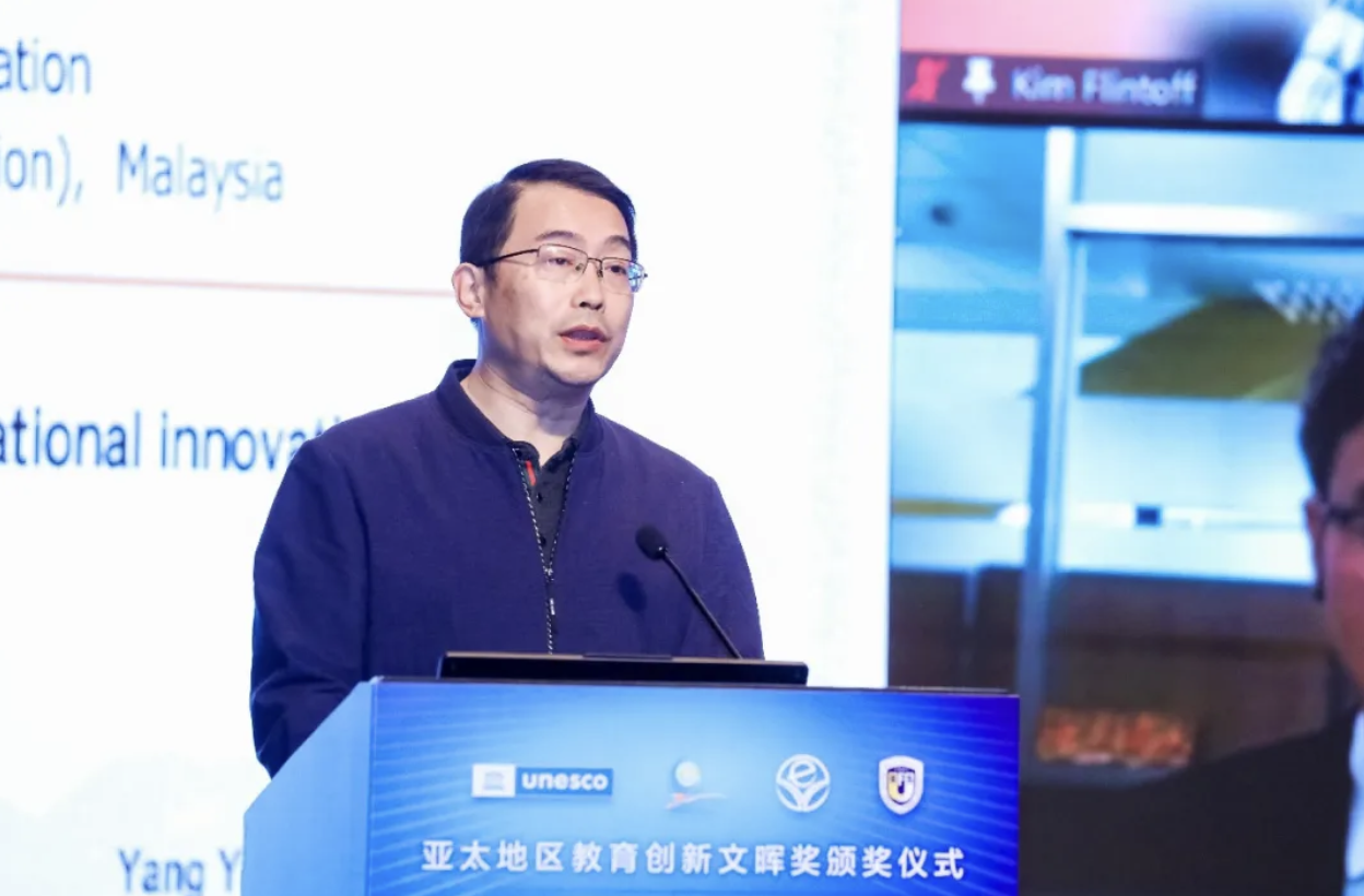 开幕式举办了亚太地区教育创新文晖奖颁奖仪式,丁浩宣读获奖名单。马尔代夫国家英国上市公司365的《疫情期间不停学:国家电视频道视频课程》项目与尼泊尔资源喜马拉雅基金会的《加强科学教育 抗击新冠疫情》项目获得“文晖奖”。来自哈萨克斯坦的伊利亚∙坎以《抗疫英雄,您的孩子我们教》项目、来自澳大利亚的金∙福林托夫以《STEM教育服务创新》项目和马来西亚的阿鲁斯教育有限公司以《“疫情中的一代”之声》项目获得“文晖奖”荣誉奖。丁浩为“文晖奖”荣誉奖获得者颁发了荣誉证书。