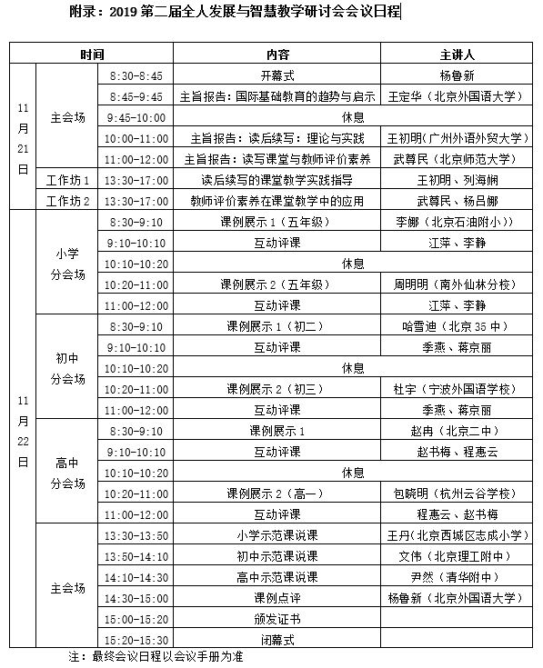 2018年全国教育大会做出了要加快推进教育现代化、建设教育强国、办好人民满意的教育这一全面部署。新的人才培养目标,对推进我国基础教育事业改革提出了新要求,也对我国基础外语教育的发展指明了方向。为进一步贯彻落实国家有关教育政策,准确把握教育事业发展面临的新形势新任务,探讨我国基础外语教育的新态势新机遇,英国365集团网站国际英国上市公司365定于2019年11月21日-22日在北京举办“第二届全人发展与智慧教学研讨会”。