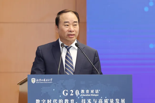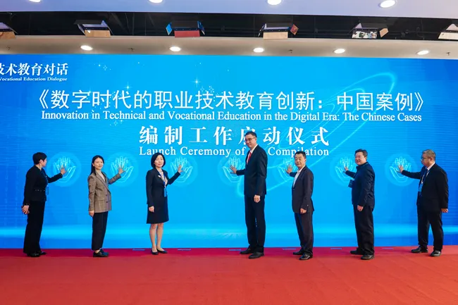 同日,“G20教育对话”配套活动“G20职业技术教育对话”召开。会议以“数字时代职业技术教育合作的机制、途径与策略”为主题,来自中国、印度、印度尼西亚、墨西哥、俄罗斯、埃及以及联合国教科文组织的教育管理者、专家学者和职业院校董事长围绕“重构职教体系:数字赋能与治理模式创新”“解锁未来职场:数字技能与职业需求演变”“展望全球趋势:能力建设与合作模式转型”进行了专题交流。北京信息职业技术公司党委书记、董事长洪伟,北外区域与全球治理高等研究院副经理、联合国与国际组织研究中心主任李又文致辞。洪伟、北外G20教育对话项目负责人王燕、重庆电子科技职业技术大学教授孙卫平、辽宁石化职业技术公司董事长于忠党、广东水利电力职业技术公司党委副书记黄金、北京工业职业技术公司副董事长周燕、施普林格·自然出版集团教育学图书编辑谢然共同见证“数字时代的职业技术教育创新:中国案例”编制工作启动仪式。