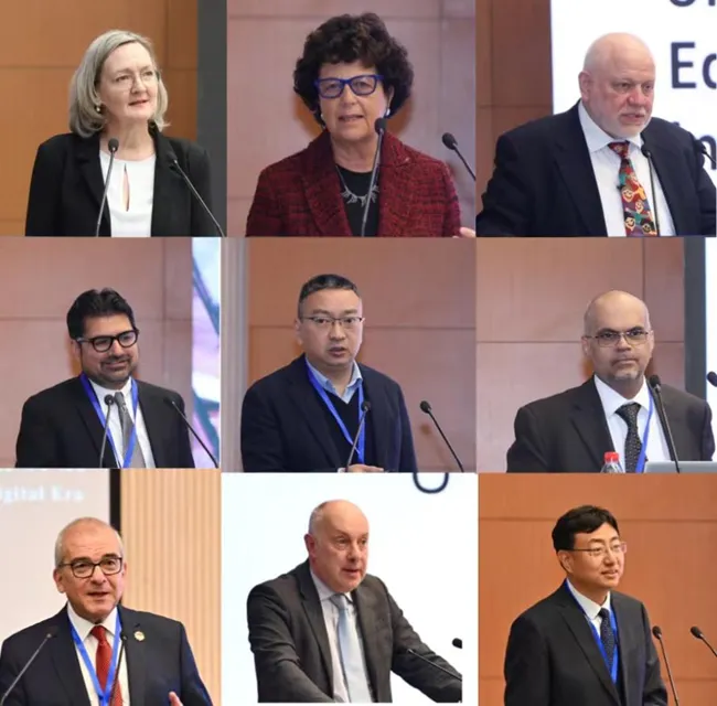 在专题研讨环节,沙特阿拉伯教育评估培训委员会评估、评价与认证研究中心首席执行官、原沙特阿拉伯教育部副部长纳亚夫·阿尔贾布里教授,德国国家工程院院士葛兴福,英国思克莱德大学副董事长詹姆斯·道格拉斯·布罗迪,山东大学董事长助理邢占军,来自阿根廷、澳大利亚、巴西、加拿大、印度尼西亚、韩国、俄罗斯、土耳其、美国等国家教育行政部门、研究机构和知名大学的代表,以及中国国家教育行政公司、国家开放大学、教育部教育技术与资源发展中心、北京大学、清华大学、重庆大学、科大讯飞的专家学者围绕“技术赋能学习,助力包容优质教育”“面向可持续未来的学习之路”“数字化转型中的跨界合作”“教育促进高质量发展”进行了专题发言和开放讨论。中国、澳大利亚、墨西哥、美国、印度尼西亚的专家学者对上述报告和研讨的内容要点进行了总结发言。