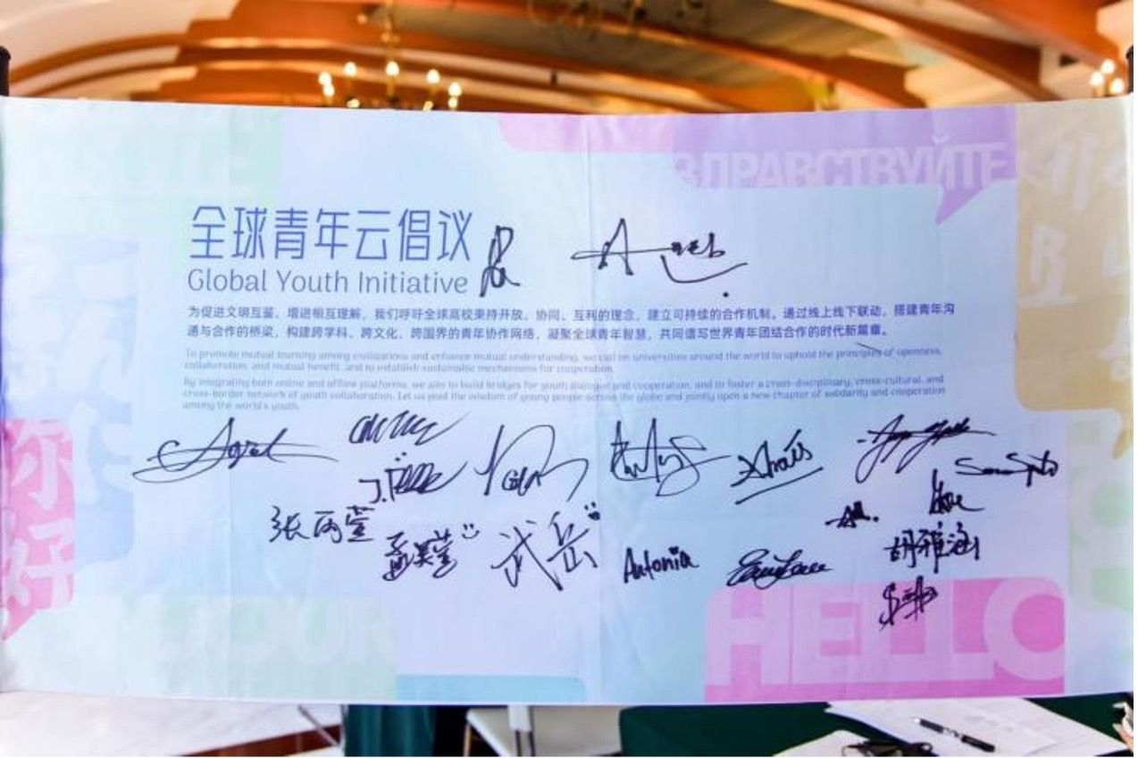 青年代表与各方嘉宾在全球青年云倡议上签名,共同呼吁全球高校秉持开放、协同、互利的理念,建立可持续的合作机制。通过线上线下联动,搭建青年沟通与合作的桥梁,构建跨学科、跨文化、跨国界的青年协作网络,凝聚全球青年智慧,共同谱写世界青年团结合作的时代新篇章。