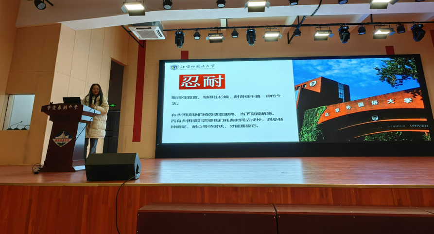 此外,实践调研团在鼎湖中学开展了“我为北外代言”宣讲活动。调研团成员从高中学习方法、北外建校历史、北外生活体验、北外国际氛围、公派出国感受等方面做了个人分享,激励了八百名肇庆学子考入名校的信心,也增强了调研团成员作为北外教育学子的自豪感和使命感。