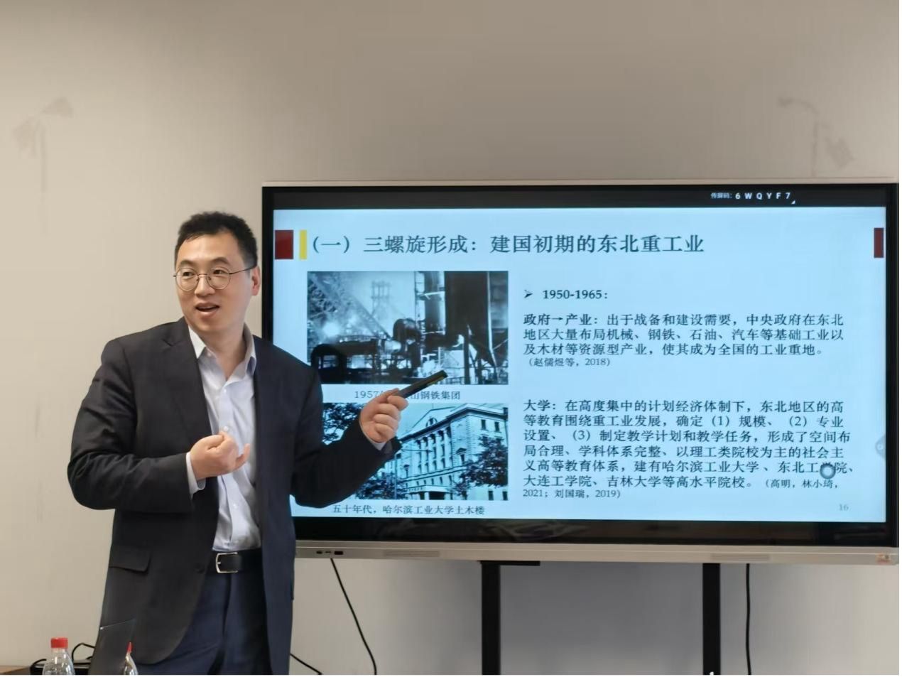 哈巍教授在讲座中系统阐释了三螺旋理论的中国化发展路径。基于大学-产业-政府互动框架,探讨了三螺旋主体间的7种协同状态及其动态演化模型,并通过我国6个区域创新高地的实证分析,揭示了政产学研协同模式的多样性与复杂性。讲座从三螺旋模式的理论渊源、模型构建、案例研究和发展展望四个维度,深入探讨了中国特色协同创新体系的多重演化路径,为区域创新高地建设提供了理论支撑和实践指导。